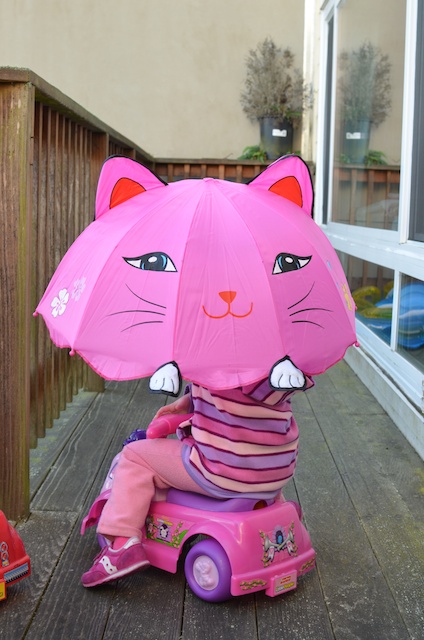 Umbrellas on the deck, playing with Olla, and Saturday at My Gym.