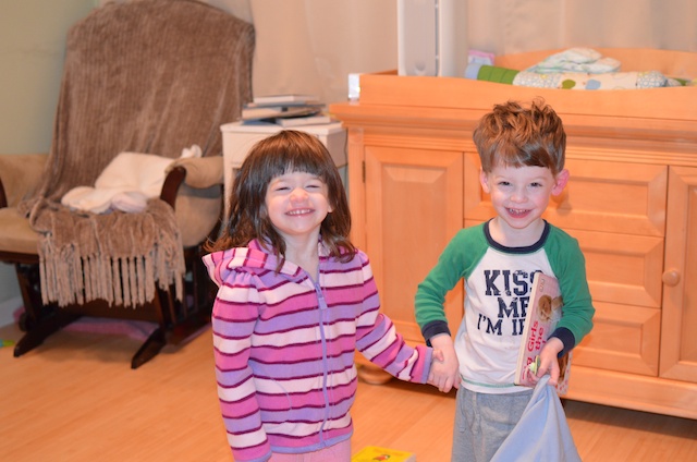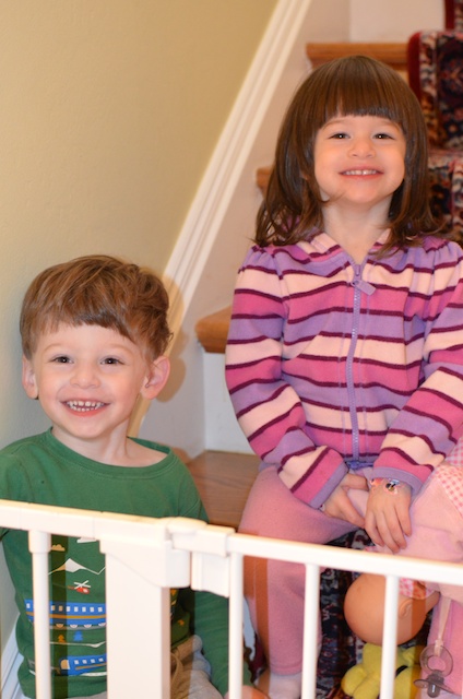 Playing “toy store” on the stairs and a visit from Doron.