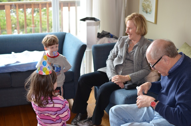 A visit from my parents, a 38th birthday party with hats and glasses, and some fun on the deck.